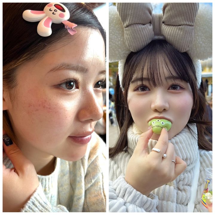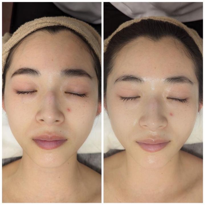 施術1ヶ月後には肌の光沢感アップ♡(左)施術前/(右)施術後