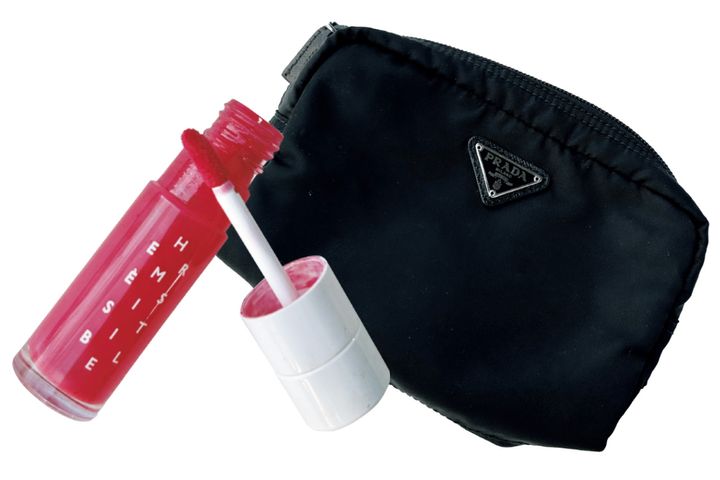 「デニムポーチはノベルティ。色味が絶妙なリップは、旬なこなれ顔になります」(小松原まどかさん)リップ セラム ティント 002(ともに私物)