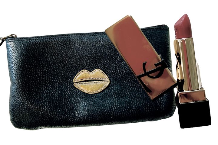 「本革のポーチは友人からのプレゼント。深みのある赤いリップは、透け感があるので派手に見えません」(舘野孝子さん)ルージュ ピュールクチュール N157(ともに私物)