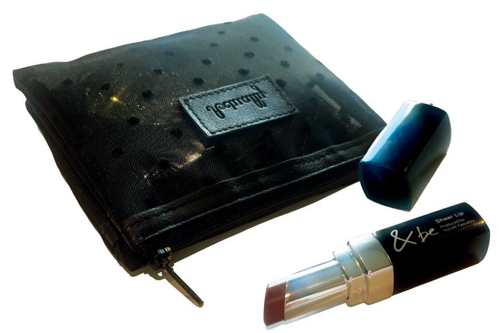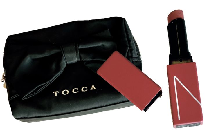 「ポーチはコスメ購入時にいただきました。リップは潤いが長持ちするのに落ちにくくマイベスコスです」(花岡維生さん)クラルテ ルージュビジュー 03(ともに私物)