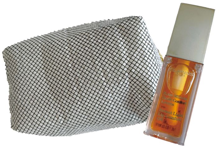 「ポーチは何年か前のクレポのコフレ。リップオイルは見た目もかわいくて、使う度にテンションアップ♡」(中澤香織さん)リップコンフォートオイル 01(ともに私物)