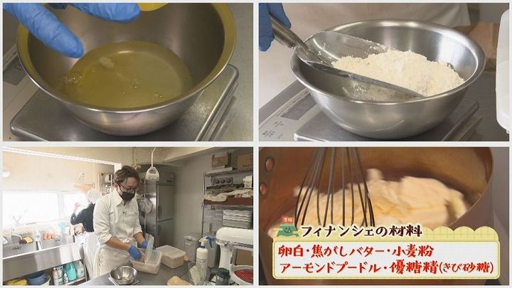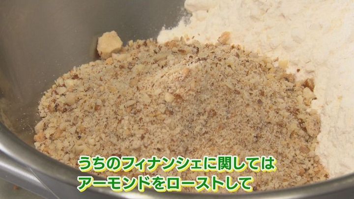 三好塁さん:「うちのフィナンシェに関しては、アーモンドをローストして、ミキサーで細かく砕いているので、ナッツ感が強く感じられる…。こういう粗く刻んだアーモンドを入れるのはうちの特徴かもしれないです」