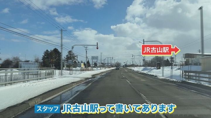 番組スタッフ:「駅っぽいですね。JR古山駅って書いてあります。この信号を左に曲がってみたいと思います」