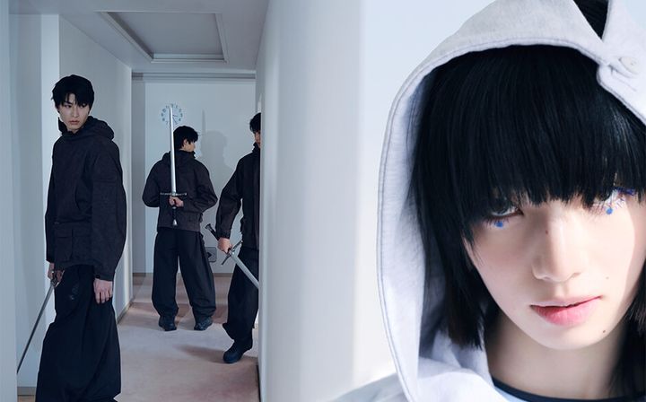 「CHECK POINT」と題した今コレクションには、ストライプ柄のフーディシャツやユニークなディテールのボタンフーディなど、充実したカジュアルウェアラインが登場。