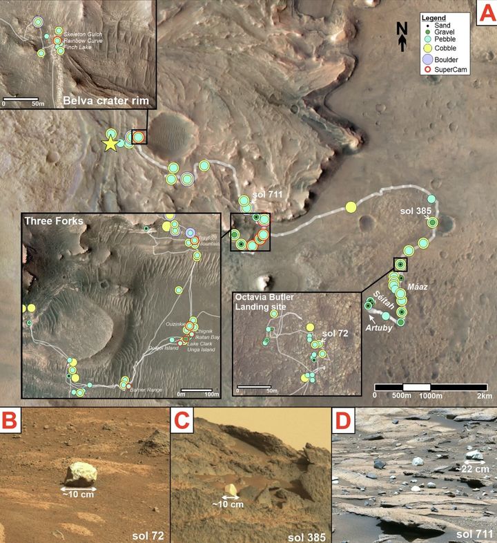 探査者の移動経路と調査対象となった「浮遊岩」/ Credit: C. Royer et al., Communications Earth & Environment(2024)