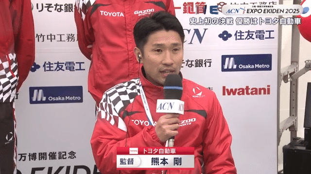 トヨタ自動車の熊本剛監督は「この大阪のど真ん中をコースとして走らせていただいたこと、そして、非常に多くの沿道のファンの方が応援してくださったことに感謝したい」と話した上で、「選手は実業団として負けられないというプレッシャーがある中で、しっかりと優勝を目指して襷をつないでくれました。1区の吉居から先頭を譲らず走り続けることができましたので、本当に頼もしく見えました」と、快走した選手たちを高く評価した。