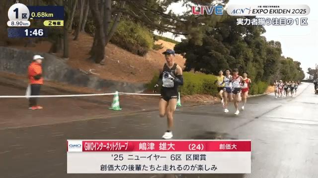 「走る前は『大学生に負けたらどうしよう』みたいなことも考えた」と言いながら、「後ろの状況が分からなかったので、とりあえず自分のペースで走った」と、激しい2位争いを演じるGMOインターネットグループ、青山学院大学、駒澤大、國學院大學を大きく引き離す。最後まで快調なペースを刻んだ太田は区間賞に輝き、2位の國學院大に1分11秒の差をつけた。