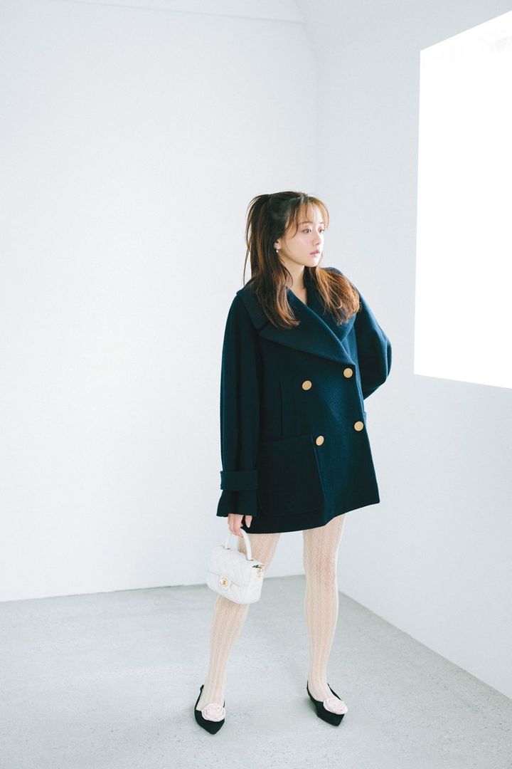 森香澄。ar1.2月合併号よりアウター¥35,200/ ココ ディール イヤリング¥3,520/ア ネモネ(サンポークリエイト) バッグ¥ 14,300/ダイアナ(ダイアナ 銀座本店) パンプス¥14,300/ガールズソサエティ タイツ/スタイリスト私物