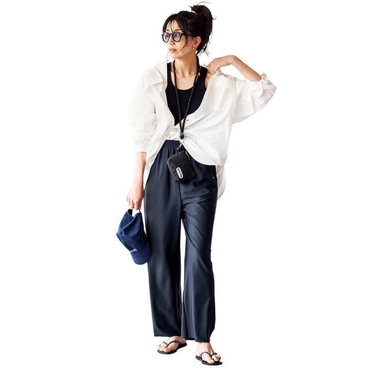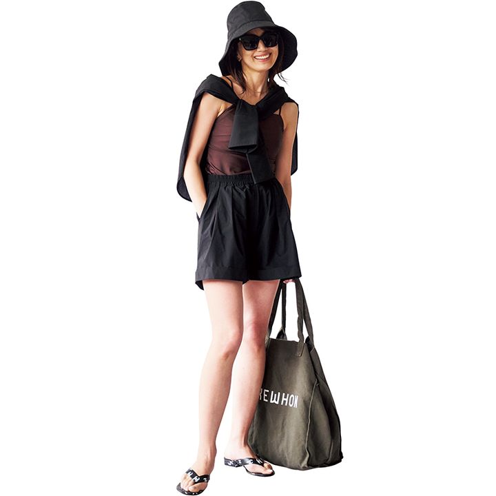 公園では日焼けも気になるし、海やプールでは、水際で何を着るか迷う。夏場の子連れカジュアルに悩むという声は多いもの。カジュアル上手でレジャーが大好きな亜希ちゃんは、機能性を優先しつつ、ちゃんとアガる服を選んでいます。