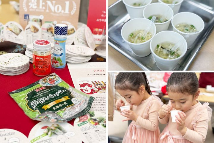 ユウキ食品さんでは刻んだライスペーパーが入った卵スープを試食。「もちっとしていて美味しい〜!」