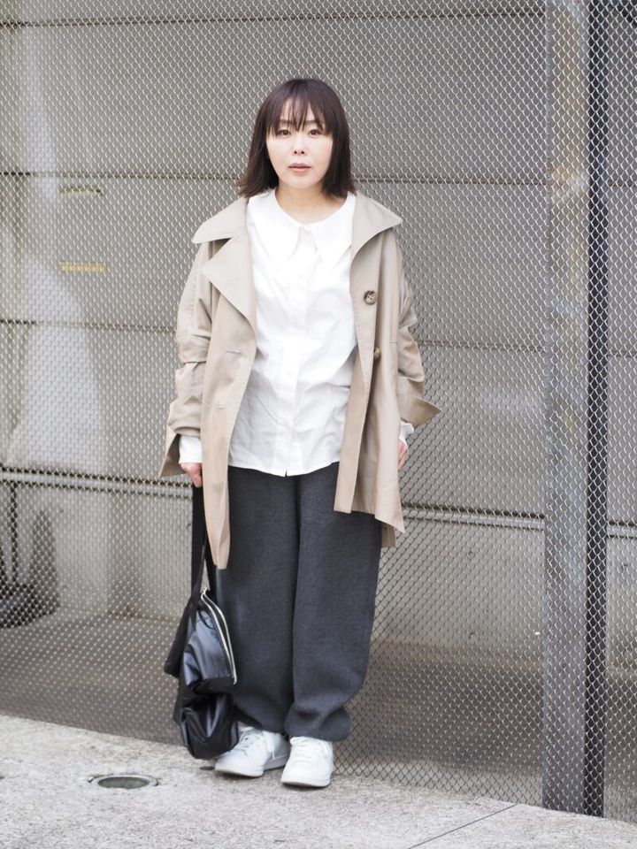ユキさんが最近よくチェックしているレディースブランド「エンフォルド」は、独創性にあふれたデザインが人気。体のラインを拾わず、流れるようなしなやかなシルエットのコートは、春先のコーディネートに大活躍!