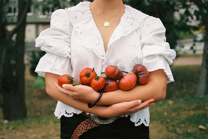 blouse and corset by LAURA VILLAR, skirt by MAJE PARIS, socks by CALZEDONIA, necklace by KEMOSABE, bag by LONGCHAMP, vintage shoes stylist’s own