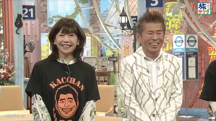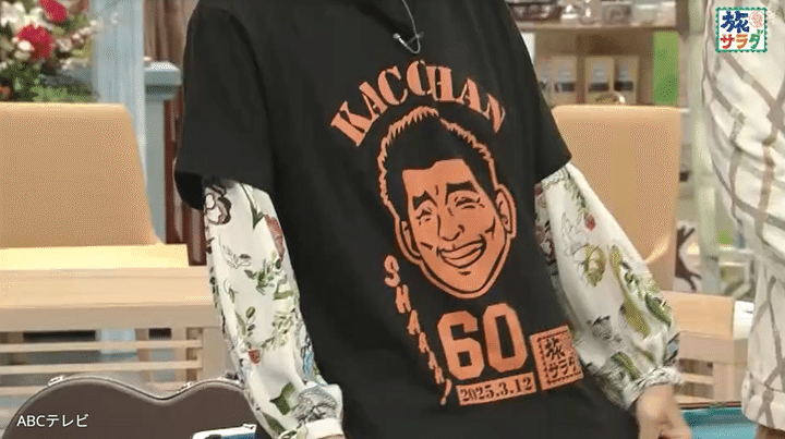 3月12日に還暦を迎えたのは、タレントの勝俣州和。3月15日に生放送された『朝だ!生です旅サラダ』のスタジオには、「祝・勝俣州和さん 還暦おめでとうございます」と書かれたメッセージボードが。同番組にレギュラー出演する女優の松下奈緒、タレントの澤井一希、ABCテレビの大仁田美咲アナウンサーは、勝俣の似顔絵と「KACCHAN 60」とプリントされた記念Tシャツ姿だ。