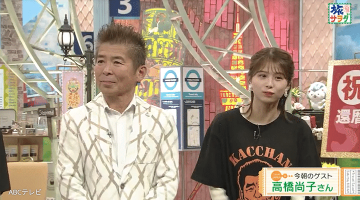 旅バラエティ番組『朝だ!生です旅サラダ』(ABCテレビ)のあのレギュラー出演者が、ついに60歳になった! 彼の還暦を祝うために、ほかのレギュラー出演者たちは、全員同じ特別衣装姿に。シドニーオリンピック女子マラソン金メダリストでスポーツキャスターの高橋尚子氏も登場し、全員で彼を祝った。