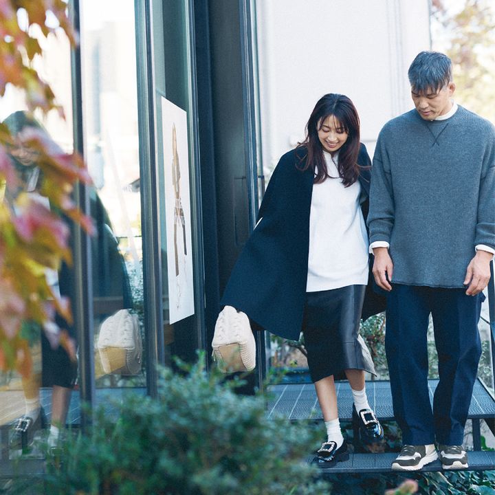 定番をアップデートした雰囲気のスニーカーを探していたときに出会ったというマルジェラ×リーボックのタビスニーカー。ブラウスやジャケットにも合うクリーンな印象できれいめ気分にもフィットします。ニットはスローン、パンツはエブール、バッグはOSOIのもの。