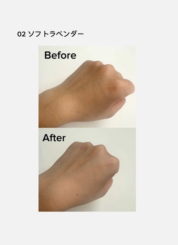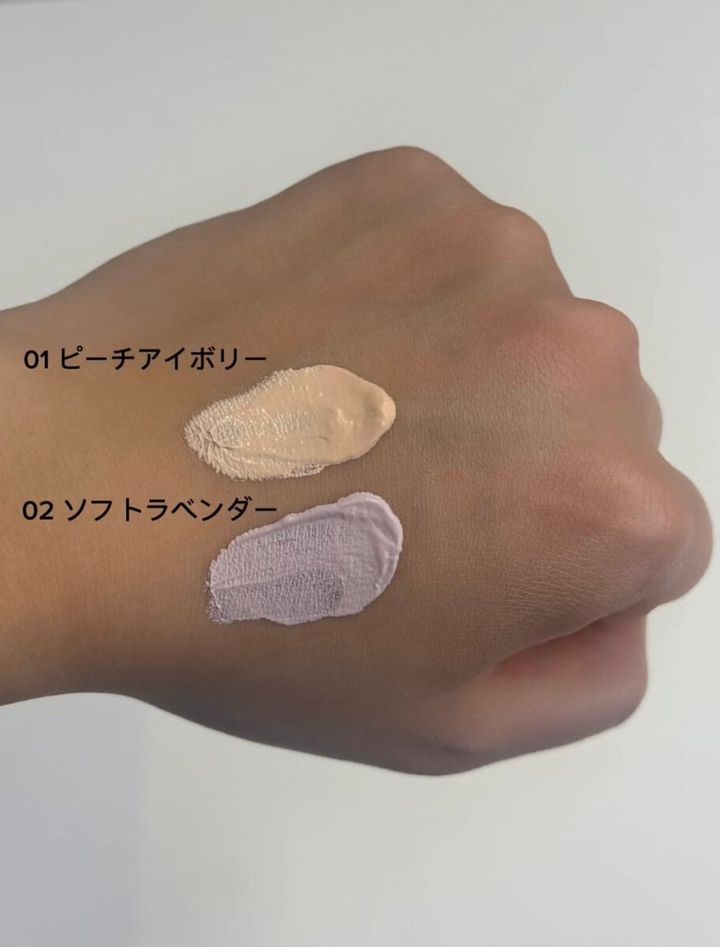 ピーチアイボリーは血色感、ソフトラベンダーは透明感がプラスされるように感じました。テクスチャーは、とてもなめらかで軽い! 乾燥もしにくかったです。
