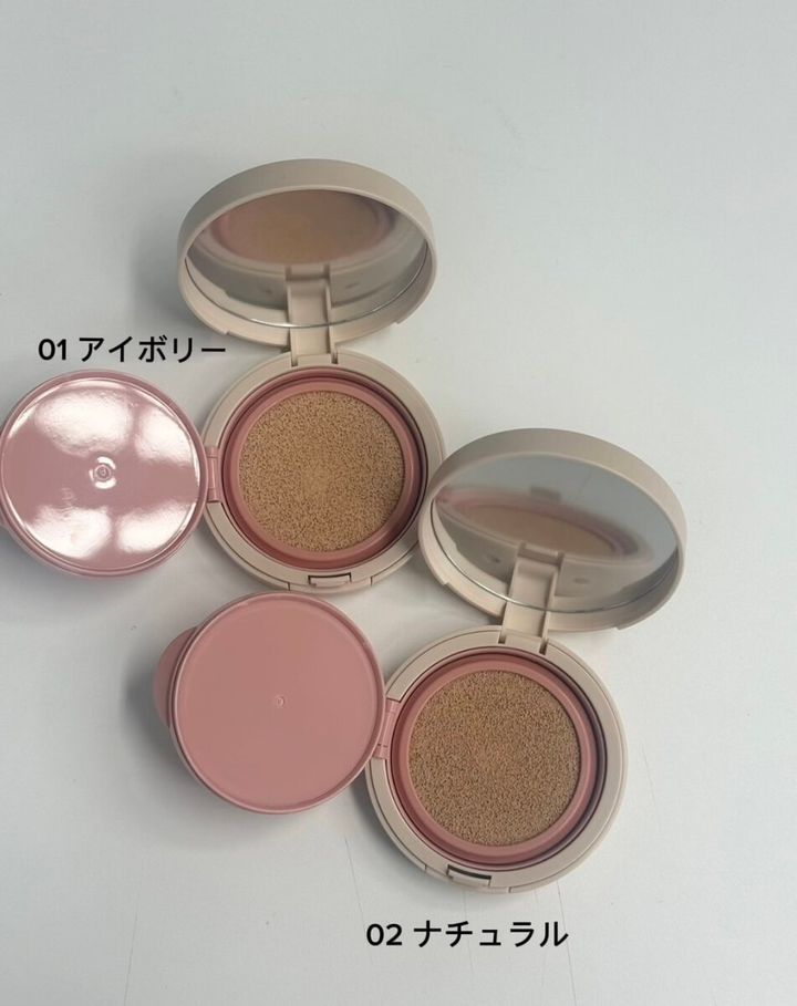 クッションファンデは、アイボリーとナチュラルの2種類。どちらも自然な明るさでした。