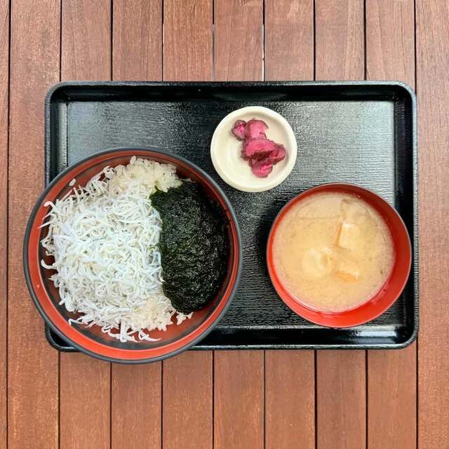 「遠州灘産の生のりと釜揚げしらすをたっぷりと乗せた生のり・しらす丼(ハーフ&ハーフ)」