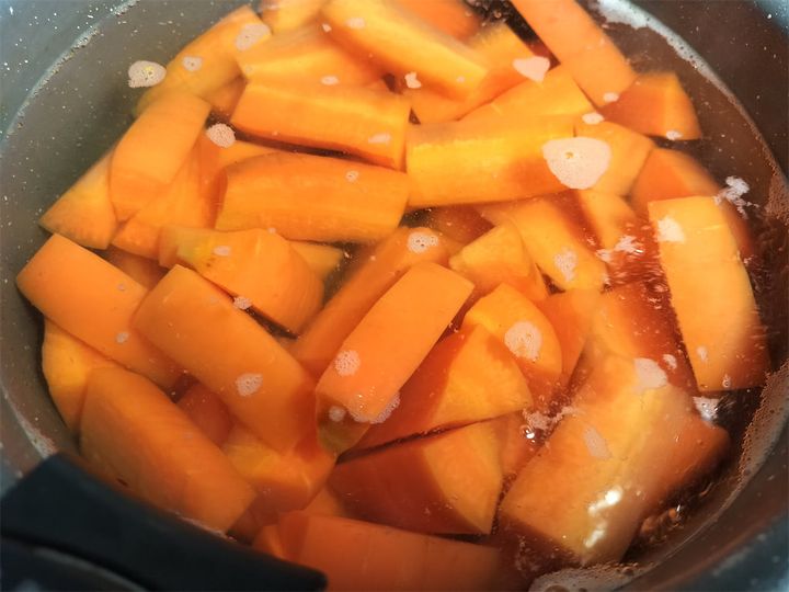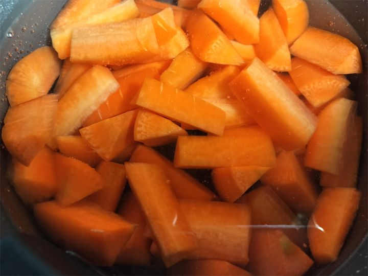 1. にんじんを鍋に入れ、かぶるくらいの水(分量外)を加えて強火にかけます。