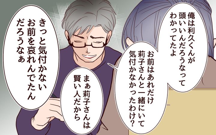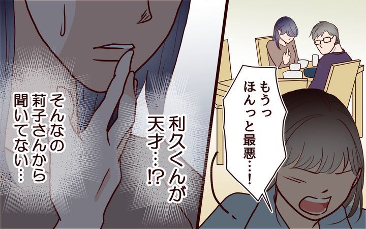 ・この夫にしてこの妻ありな感じだな。常に誰かを見下してないと気が済まないのか? 旦那は利久くんが頭いいと気付いてたとか言ってるけど絶対に嘘だろ。この夫の性格もマジ最悪だな。