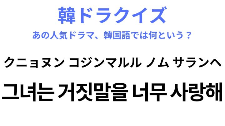 「그녀는 거짓말을 너무 사랑해(クニョヌン コジンマルル ノム サランヘ)」を訳すと?