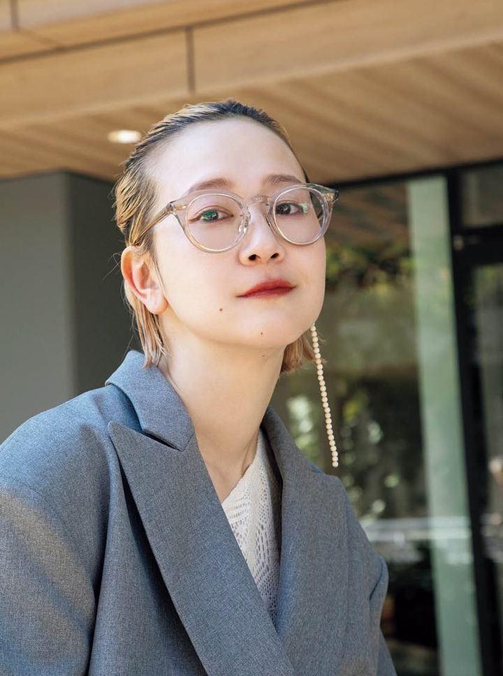 「どんなスタイルにも合うクリアフレームが好き」ニット¥71,500(バイ・マレーネ・ビルガー/ショールーム ロイト)、BLANC..の眼鏡、その他本人私物
