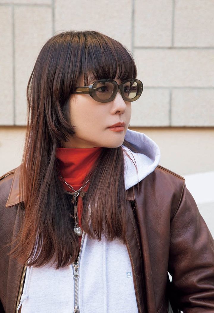 「大ぶりで個性的なフレームはそれだけで存在感が。べっ甲調だから割とマイルドでスタイリングになじみやすいところが気に入っています」(西来路陽子さん)