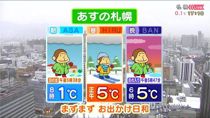 20日の札幌です!朝昼晩の天気をもんすけでお伝えします!