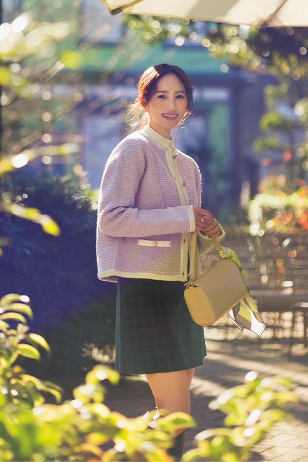 3. 大人が真似したい上品ミニ丈ルック♪トラッドなチェックスカート×春色の旬ジャケットで今っぽく
