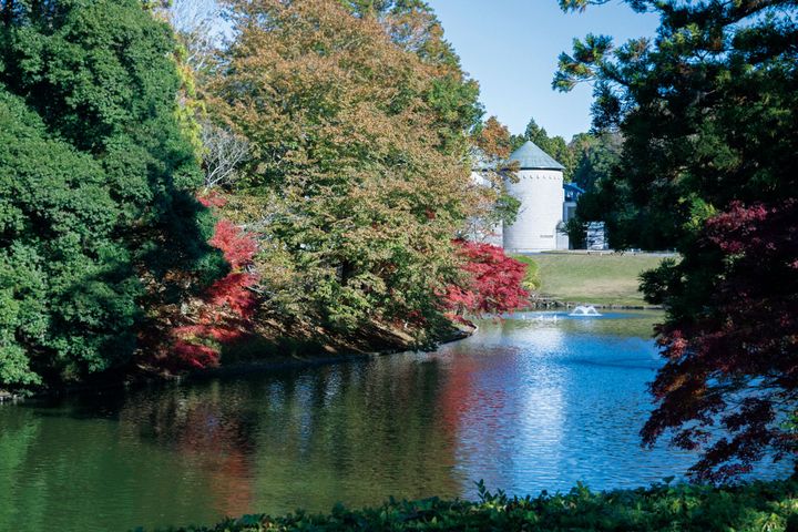 四季折々の表情を見せる美しい庭園の中、白鳥や鴨が泳ぐ湖を望んで立つ。館内は、静謐(せいひつ)な空間が広がる、まさに美の殿堂。