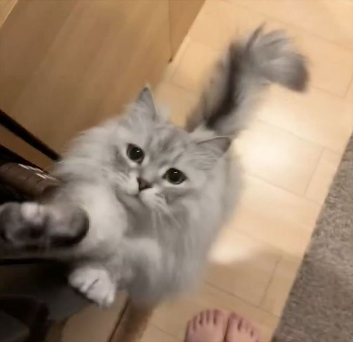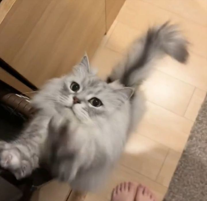 ネコの飼い主さんの顔に向かって、おててを伸ばしながら迫ってきたりしますよね。 下からおててを伸ばしてくる、かわいいサイベリアンが反響を呼んでいます!