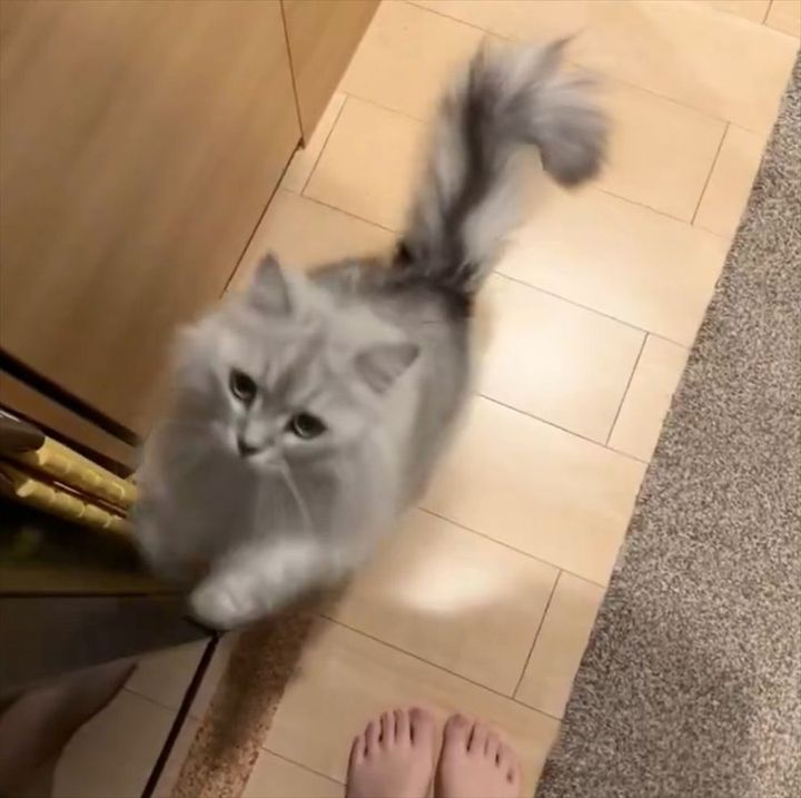 3. 飼い主さんに迫るように伸びをするサイベリアンに反響「言葉で表すと“みょ〜ん”って感じ」「よいしょ、よいしょ」