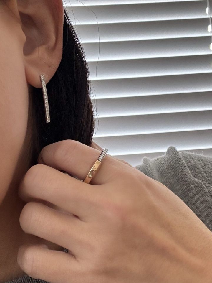 やはり登場回数が多いのはセット使い。リングは片側のホワイトゴールド台の部分にダイヤモンドがセッティングされているので、人差し指に着けることが多いです。