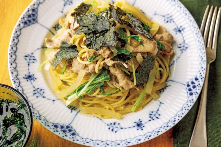 フライパンひとつで作れる『豚こまと大根のゆずこしょうパスタ』。パスタを別ゆでしないから手軽で、洗い物も最小限に。