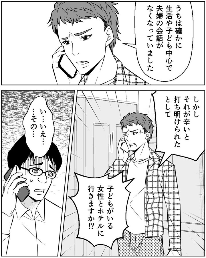 新人社員のナオコから家族について相談を受けていたトモキは、流されるままにナオコと関係を持ってしまいます。ナオコとの時間を作るために自分の家庭を犠牲にしていました。しかし妻・ミホにそれがバレてしまって…。