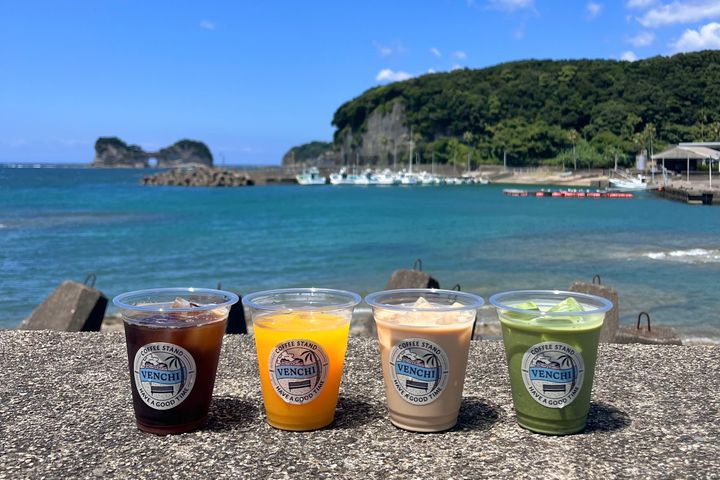 VENCHI coffee standは和歌山県白浜町のシンボルとして親しまれる「円月島」の向かいに店舗を構えるコーヒースタンドです。