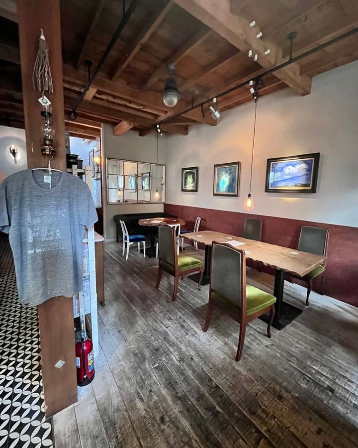 絵画やセレクトされたTシャツが飾られた店内は、明るすぎず落ち着いた空間になっています。店内に広がるコーヒーの香りが印象的でした。