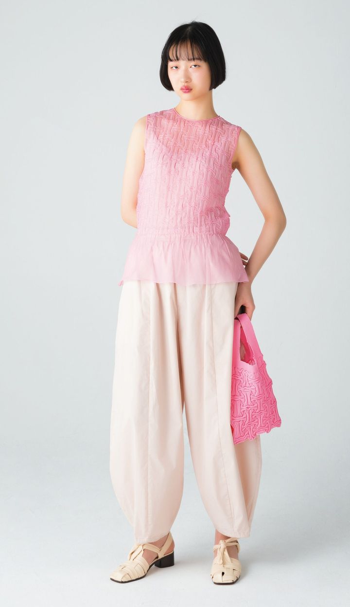 ノースリーブトップス¥30,800 バッグ¥19,800(共にオープン セサミ クラブ) パンツ¥35,200(ADAWAS/ショールーム セッション)