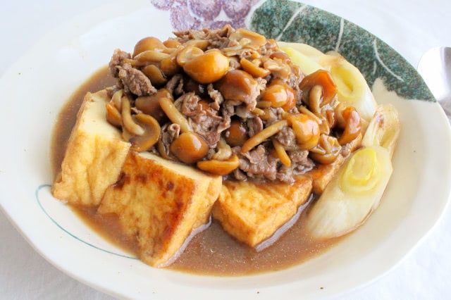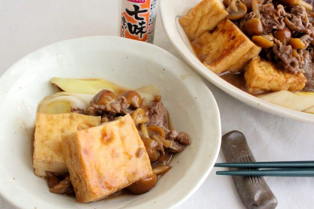 牛肉少なめ、厚揚げ多めの割合なので、比較的リーズナブルに作れるのもうれしいポイント。なめこも、一年中安定した値段で購入出来るので、作りやすいレシピです。