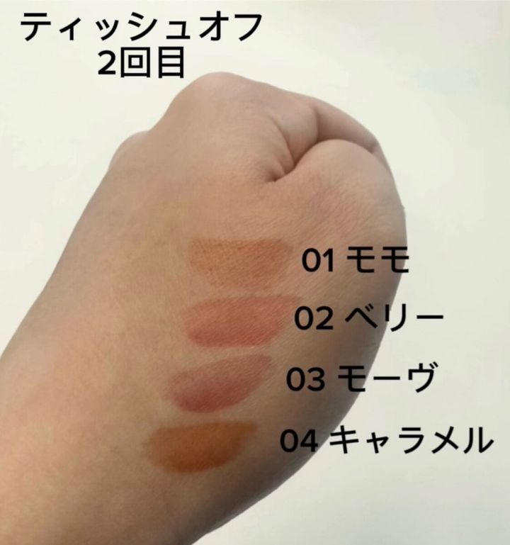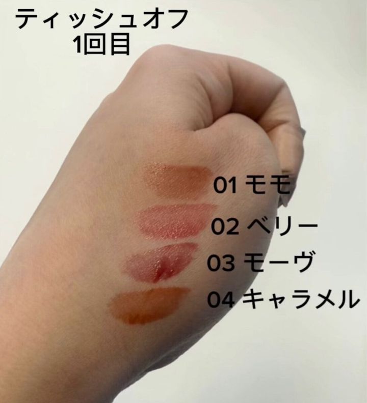 ティントということで、色持ち具合をティッシュオフして検証!まずは、1回目。