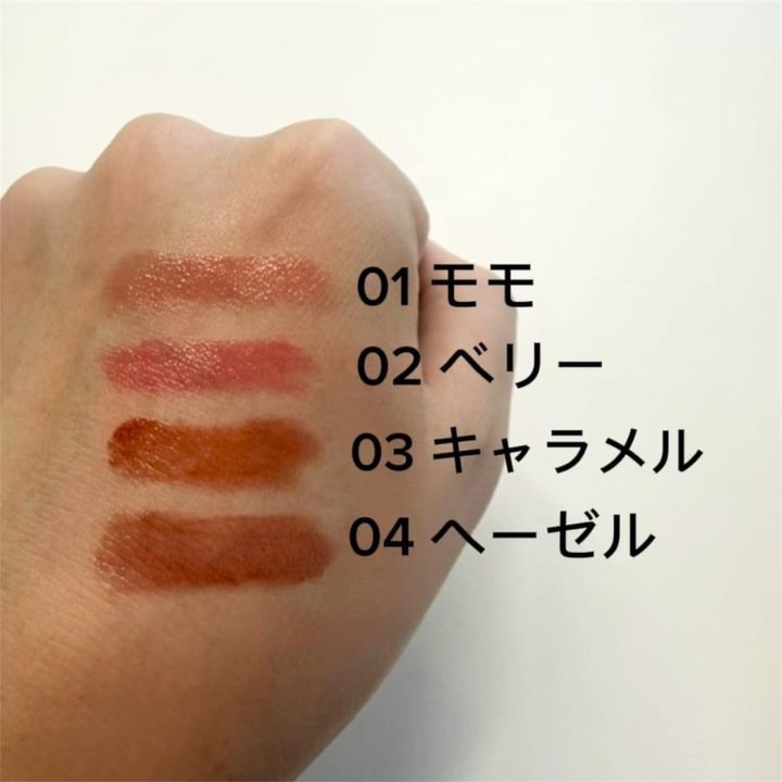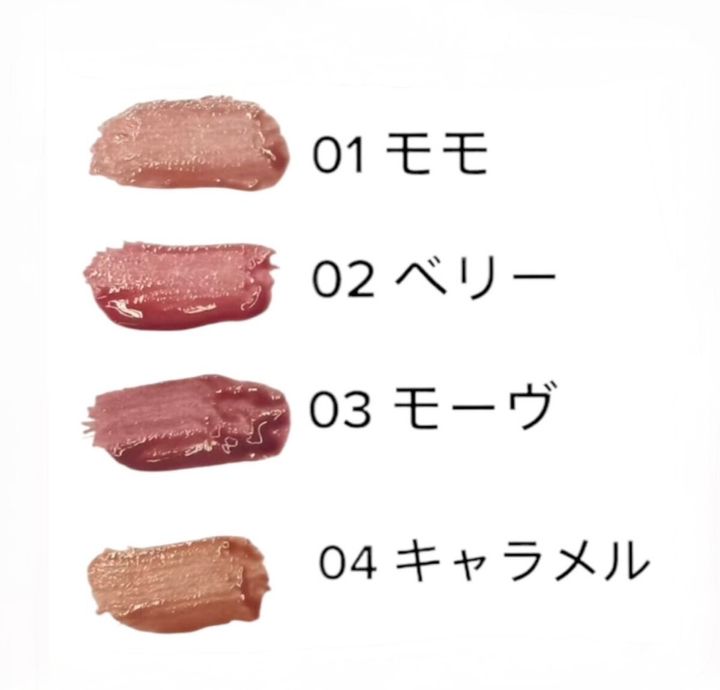 シアーグラスリップスティック (01モモ 02ベリー03モーヴ 04キャラメル) 各¥990