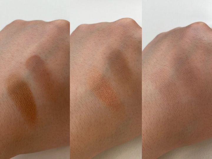右から、ポエティックローズ、ロマンティックシダー、ミスティックアンバー。ほどよいラメ感とくすみカラーが使いやすい。