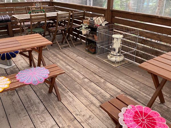 ぬくもりを感じるログハウスと木々の緑が合わさり、街なかということを忘れるような日常離れした素敵な雰囲気です。