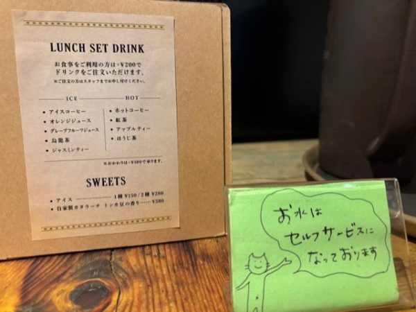 お水もセルフサービスなので、注文した際に席へとお持ちください。