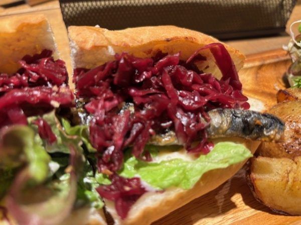 紫キャベツのマリネ。酸味が苦手な方はパスかもですが、揚げたさばとパンに塗っているマスタード、新鮮葉物との相性もよくそれはそれはとってもおいしかったです。そして、このボリュームです!