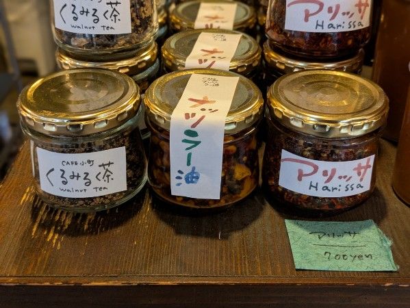 限定メニューでよく使用される自家製の「ナッツラー油」「アリッサ」。店内で販売中☆