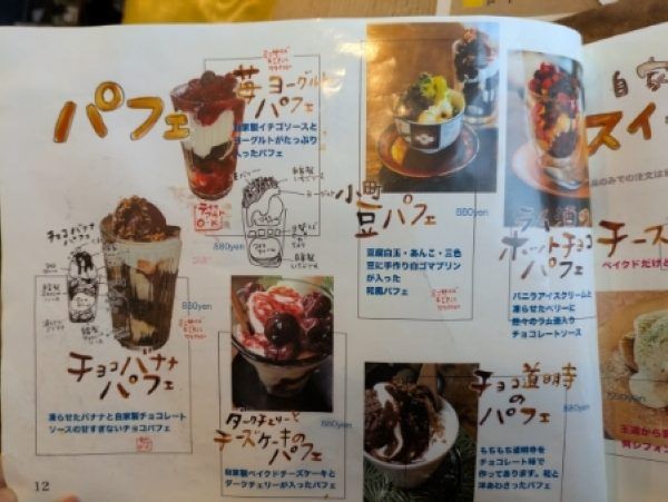 定番のパフェメニュー。ほかに自家製のプリンやケーキも