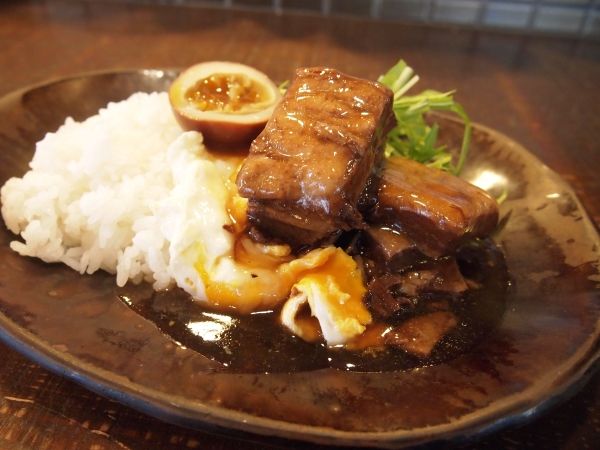 さて、この日ランチに選んだのは、豚肉を3日間煮込んで作られている「豚角とダブル卵のプレート」(1100円)。このメニューはお店がオープンしてから男性、女性問わず人気のひと皿なのだそうです。