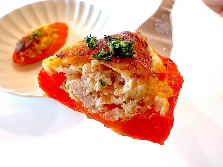 ふんわりとした口当たりの鶏ひき肉の旨味と、トースターでじっくり火が通ったにんじんの甘味が口いっぱいに広がります。