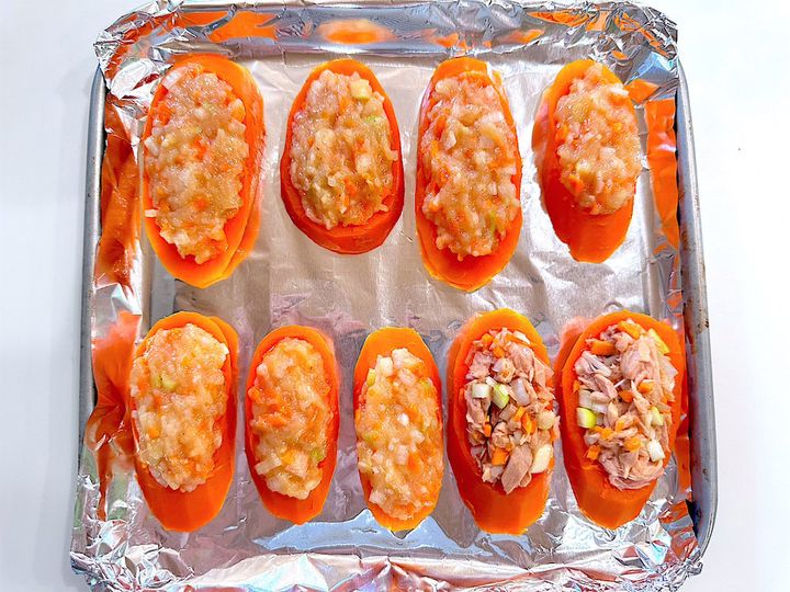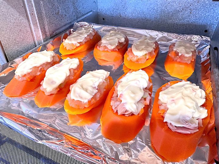 マヨネーズを塗ったことで、載せた具材もにんじんも、よりジューシーに香ばしく仕上がっていますよ〜。